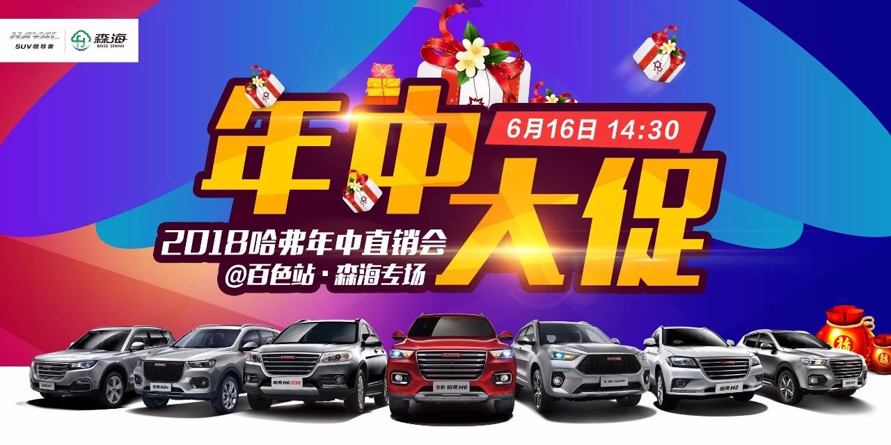 6月16日下午14:30,百色森海哈弗4S店 2018哈弗SUV年中大促直銷(xiāo)會(huì) @百色站 大促矩獻(xiàn),限時(shí)團(tuán)購(gòu),盛宴來(lái)襲 購(gòu)車(chē)享底價(jià),6.16到森海 多重享好禮,6.16到森海 特供享特價(jià),6.16到森海 服務(wù)享實(shí)惠,6.16到森海 【到店禮】 活動(dòng)當(dāng)天到店,立贈(zèng)精美誠(chéng)意禮一份 【集贊禮】 長(zhǎng)城、哈弗任意車(chē)型車(chē)主 轉(zhuǎn)發(fā)本文至朋友圈集滿(mǎn) 38個(gè)贊 活動(dòng)當(dāng)天到店,即送常規(guī)保養(yǎng)一次 (每車(chē)限領(lǐng)一張保養(yǎng)券) 【訂車(chē)禮】 訂車(chē)幸運(yùn)抽獎(jiǎng),100%中獎(jiǎng)贏好禮 【特惠禮】 最高鉅惠45000元,年中大促全系讓利 【置換禮】 置換雙重禮遇,最高可享6000元補(bǔ)貼 【金融禮】 按揭購(gòu)車(chē)尊享 最高10萬(wàn)免息,0利息0首付輕松貸 【折扣禮】 精品回饋,超豪華原廠精品五折大派送 High購(gòu)盛宴 哈弗 618元購(gòu)車(chē)紅包限時(shí)搶 500元延保券、118元養(yǎng)護(hù)套餐券限時(shí)搶 置換購(gòu)車(chē)雙重禮遇 新車(chē)發(fā)布 “國(guó)民神車(chē)”再出發(fā) 全新哈弗H6豪華型/超豪型駕臨 百色區(qū)域全面上市 全新哈弗H6煥新登場(chǎng) 外觀、內(nèi)飾、動(dòng)力、安全再升級(jí) 雙十佳動(dòng)力組合,有激擎、更省油 哈弗安全聯(lián)盟,鑄就行業(yè)安全新標(biāo)桿 鎧甲安全,出行更放心! 趣味共享 歡樂(lè)賽足球,贏競(jìng)技大獎(jiǎng)! 趣味比拼圖,賽出你眼力! 射手秒圈套,百發(fā)百中禮! 更多互動(dòng)好禮,更多精彩歡樂(lè) 一切盡在,6月16日百色森海哈弗店 刺激,與您不見(jiàn)不散! |