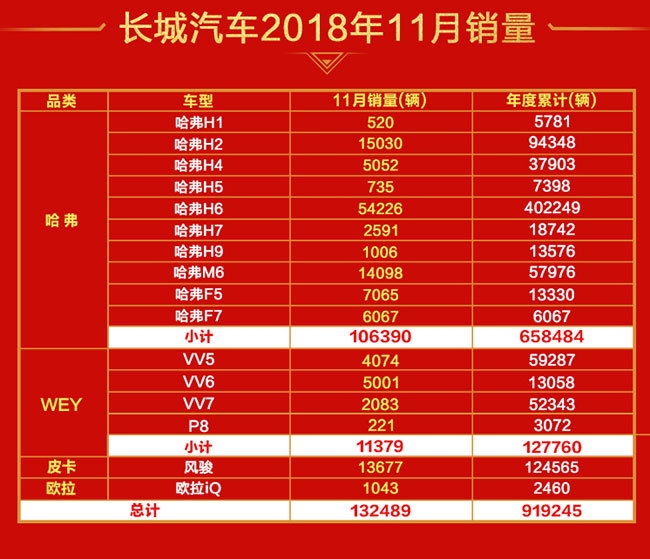 12月7日,長城汽車發(fā)布了11月產銷數據。在國內汽車市場整體遇冷的情況下,長城汽車繼“金九銀十”逆市增長后,繼續(xù)全面上漲。11月,長城汽車共銷售新車超13萬輛,達到13.25萬輛,環(huán)比增長20.35%,上漲勢頭銳不可當,創(chuàng)下今年單月銷量紀錄。今年1-11月,長城汽車累計銷售91.92萬輛,其中累計出口4.29萬輛,整體銷量突破百萬已毫無懸念。 哈弗H/F雙系齊發(fā)力 銷量破10萬大關 ![]() 今年11月,“SUV領導者”哈弗延續(xù)了9月開始的“純自主迎貿易戰(zhàn)哈弗神車降2萬”促銷活動,銷量增長勢能持續(xù)釋放,銷量突破10萬輛大關。據長城汽車11月產銷數據顯示,哈弗品牌11月銷量高達106390輛,環(huán)比增長25.23%。在繼“金九銀十”銷量暴漲后,繼續(xù)保持大幅上漲。 ![]() 11月,哈弗品牌H系、F系表現均堪稱完美,雙系車型齊發(fā)力,共同成為哈弗品牌增長的強大動力。其中,哈弗H6表現尤為突出,銷售54226輛,累計66個月保持SUV銷量第一。今年1-11月,哈弗H6已累計銷售超40萬輛,達到402249輛,無可爭議地繼續(xù)保持著“國民神車”的稱號。另外,在11月開幕的廣州車展上,全面升級智聯系統(tǒng)的全新哈弗H6冠軍版上市,以10.2萬元的價格在車市投下了“重磅炸彈”,讓哈弗H6之后的銷售勢頭持續(xù)看好。哈弗M6在11月也突破1.4萬輛,達到14098輛,環(huán)比增長14.85%,成為哈弗品牌又一大亮點。 ![]() 作為哈弗品牌的新車系,哈弗F系在11月表現驚艷。首款車型哈弗F5在上市首月銷量突破6千輛后,11月銷量更突破了7千輛,達7065輛,環(huán)比增長12.77%,成為哈弗品牌增長的強勁動力。11月6日上市的哈弗F系旗艦產品哈弗F7,上市三周銷量達6067輛,且終端訂單早早破萬仍在飛速增長。哈弗F5和哈弗F7擁有各自明確清晰的產品性格與消費群體:“運動時尚型SUV”哈弗F5定位潮流智能,年輕時尚,顏值高;F7定位極智鋒睿,擁有領先的智能科技,表達進取的年輕態(tài)度。11月,哈弗F5和哈弗F7聯手貢獻了超過1.3萬輛的銷量,未來,隨著F系家族的發(fā)展壯大,一個更加年輕、更加時尚、更加科技、更加強大的哈弗品牌已經呼之欲出。 ![]() 引領中國豪華品牌 WEY品牌穩(wěn)步向上 作為中國豪華SUV的領導者,WEY品牌一直致力于打造真正的中國豪華品牌,為中國的用戶帶來觸手可及的豪華。如今,WEY品牌已經創(chuàng)立2周年。2年來,WEY品牌贏得了20萬車主的信任,成為第一個銷量突破20萬輛的中國豪華品牌。今年1-11月,WEY品牌累計銷量突破12萬輛,達到12.78萬輛,位列15萬-20萬元市場區(qū)間三甲、中國豪華品牌第一名,打破了合資品牌對高端市場的壟斷,并把絕大多數合資品牌拋在身后。 ![]() 更重要的是,在短短的兩年時間里,WEY品牌將“豪華可以觸手可及”的概念深深地植入了消費者的內心,讓中國消費者了解到中國品牌在技術上的進步和領先。11月,WEY P8榮獲了“中國心”2018年度新能源汽車動力系統(tǒng)金獎,WEY品牌的領先技術再次受到行業(yè)認可;今年上市的WEY VV6全面搭載Collie2.0智慧安全系統(tǒng),將智能安全標準提升到前所未有的高度。同時,WEY VV6的銷量也證明了消費者對中國豪華品牌的認可。11月,WEY VV6銷量達5001輛,環(huán)比增長24.5%。與VV7、VV5和P8一起,共同成為WEY品牌向上突破的中堅力量。 ![]() 長城皮卡開啟互聯時代 歐拉ORA初露鋒芒 11月,作為國內皮卡市場“霸主”,長城皮卡繼續(xù)引領市場,共銷售13677輛,環(huán)比增長4.71%。今年1-11月,長城皮卡銷售超12萬輛,達到124565輛。 ![]() 目前,長城皮卡在國內市場已連續(xù)20年銷量第一,在全球100多個國家已累計銷售150萬輛。不僅是銷量領先,在技術上,長城皮卡也正在引領行業(yè)。11月22日,新一代互聯網皮卡風駿7在云南上市,開啟了中國皮卡的互聯時代。作為長城皮卡新戰(zhàn)略及3年“5+N”產品布局的首款車型,風駿7在造型設計、動力、安全,尤其是智能網聯技術的應用上達到全面領先,成為新一代互聯網皮卡標桿。作為長城22年專業(yè)皮卡制造經驗的大成之作,風駿7打破了現有中高端皮卡市場的格局,為中國皮卡開辟了一個嶄新的時代。 ![]() 此外,長城汽車獨立新能源品牌歐拉ORA也在不斷迭代升級,并開始初露鋒芒。首款車型歐拉iQ上市后,產品訂單數量快速上漲。11月,歐拉iQ交付量首次突破千輛,達到1043輛。在2018廣州車展上,歐拉iQ高續(xù)航版上市,車輛的續(xù)航能力從現款車型的360km提升到401km,更好地緩解了消費者的里程焦慮。11月1日,歐拉品牌第二款車型R1也正式開啟預售,首批限量777輛僅用273秒便搶購一空。 ![]() 與國內大多數純電動汽車不同的是,歐拉ORA全系車型采用的ME平臺并非是在燃油車平臺上改造而來,而是長城汽車正向研發(fā)打造的國內首個純電動專屬平臺,在顏值、空間、智能、安全和品質五大方面均具有明顯優(yōu)勢。未來,在ME平臺上打造的歐拉iQ和歐拉R1將共同成為歐拉ORA品牌面向新能源汽車市場的主力,為消費者提供充滿樂趣的用車體驗。 “百萬長城”突破車市寒冬 引領自主品牌集體向上 受國內經濟整體下行壓力影響,今年的車市低迷已是有目共睹。尤其進入9月以來,“金九銀十”這個傳統(tǒng)銷售旺季并沒有如行業(yè)期盼那樣讓車市止跌。但長城汽車的表現卻給整個汽車市場帶來希望。 ![]() 自今年9月以來,作為自主品牌領軍者的長城汽車表現愈戰(zhàn)愈勇。9月-11月,長城汽車銷量每月一個